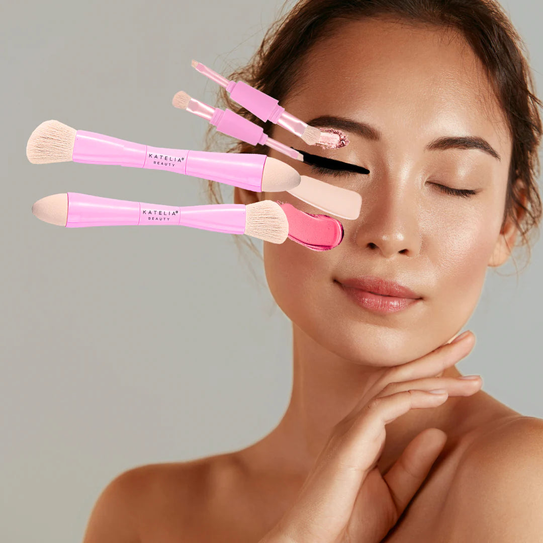 Our 4-in-1 brush combines four essential tools in one sleek design — perfect for foundation, contour, eyeshadow, and blending — saving space without compromising on quality.